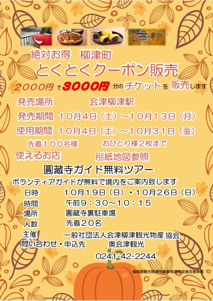 圓藏寺ガイド無料ツアー&柳津町とくとくクーポン販売のご案内